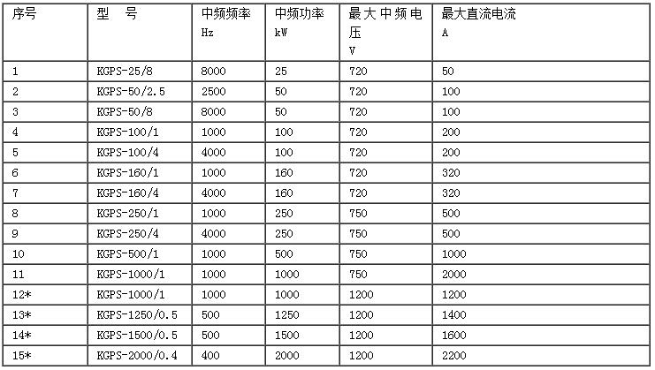 KGPS中频电源技术参数
