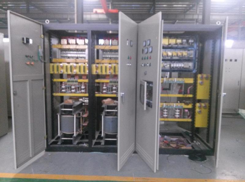 晶闸管中频电源和可控硅中频电源是一种静止变频装置,利用可控硅元件将工频三相交流电源变换成中频单相交流电源,主要应用于感应加热。 感应熔炼 KGPS中频炉及其他需要中频电源供电的场合。由于它具有整机效率高,重量轻,噪音小,起停迅速而且对电网无冲击,频率自动跟踪负载参数变化,功率调节方便等一系列优点。