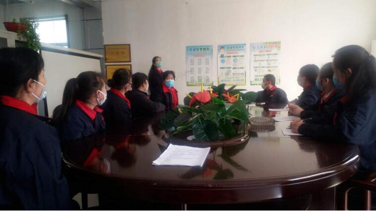 图二:公司工会女工委员于莲花向与会女职工宣讲企业复工复产疫情防控知识。